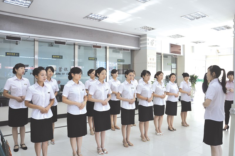 邮储银行随州市分行营业前台规范礼仪服务邮储银行总行信贷业务部银青志副总经理(前右三)、省分行胡小琼副行长(右一)