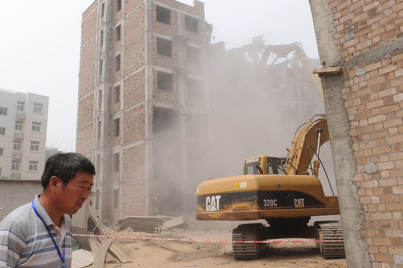 7月17日,因为存在严重的质量问题和安全隐患,郑州市“汇景嘉园”小区一处拆迁安置小区8栋刚封顶2个月的多层楼房,开始全部拆除、重新建设。近日,正在建设中的郑州市京沙快速路拆迁安置房“汇景嘉园”小区被曝光存在严重的质量问题,多面墙体爆裂面积占载体面积的90%以上。 (新华社发)