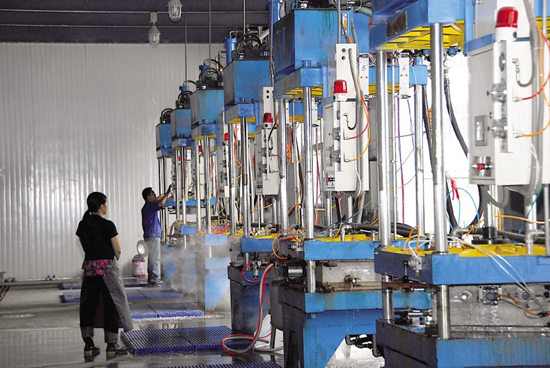湖北三环铸造公司投入9000万元新上消失模铸造线。该铸造线又称“绿色铸造工程”,是目前世界上最先进的铸造工艺之一,易于实现机械化流水线生产,减轻了工人劳动强度。 (本报记者 孙洪涛 摄)