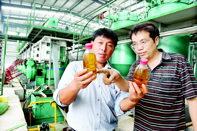 7月18日,技术人员在随县天星粮油科技有限公司预榨车间检测油料品质。该公司是随县经济开发区招商引资企业。公司一期投资1.2亿元,已建成日处理油料500吨的预榨、浸出、精炼油生产线及配套设施。 (本报记者 杨闻名 通讯员 杨金群 摄)