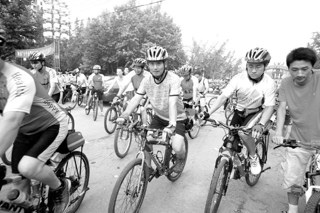 7月28日,“捷安特环湖北楚天行”活动在随城神农公园举行发车仪式。来自全省的部分自行车爱好者参加了这项活动。 (本报记者 孙洪涛 摄)