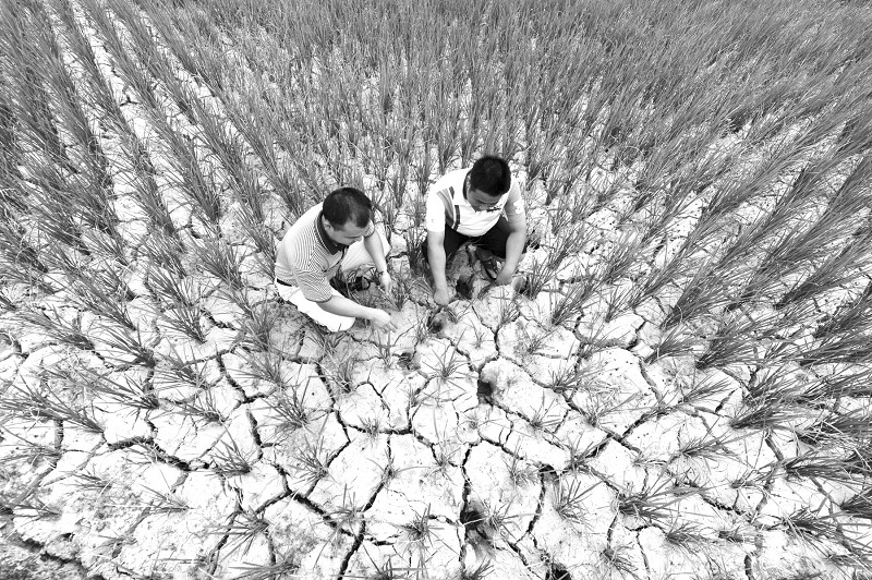 国家防总发布的消息显示,目前贵州省耕地受旱面积756万亩 (作物受旱429万亩、缺水缺墒327万亩),有88万人、52万头大牲畜因旱饮水困难,主要分布在毕节、铜仁、遵义等地;湖南省耕地受旱面积759万亩 (作物受旱565万亩、缺水缺墒194万亩),有43万人、35万头大牲畜因旱饮水困难,主要分布在永州、邵阳、衡阳等地;重庆市作物受旱面积161万亩,有37万人、19万头大牲畜因旱饮水困难,主要分布在綦江、万盛、南川等地。在湖北,梅雨之后全省平均降雨量仅为37毫米,库塘蓄水量同比也减少了两成以上。目前湖北襄阳、随州、孝感等地受旱农田达到450多万亩。