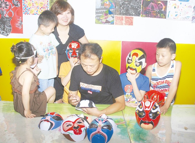 ·殷店镇天河口民间艺人丁毅暑假教孩子们学戏剧脸谱绘画
