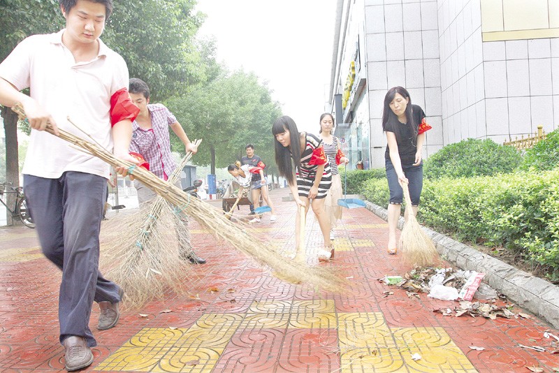 8月5日,曾都区城乡规划建设局组织职工,开展“洁美随州”街道大清扫活动。(本报记者 杨闻名 摄)