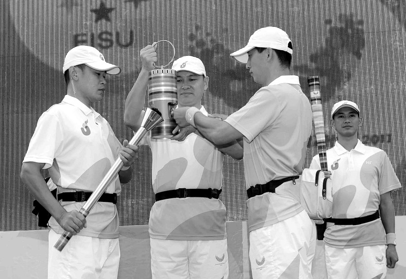 8月11日,第26届世界大学生运动会城市火炬传递在深圳龙岗举行,这也是城市火炬传递的最后一天。(新华社发)