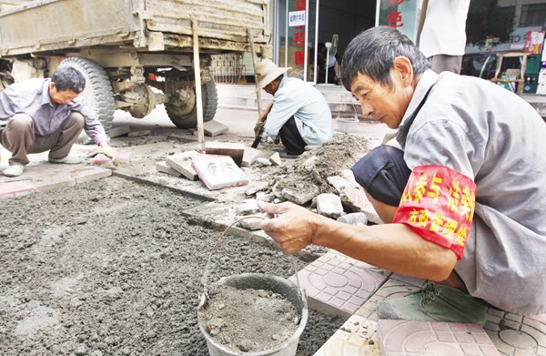 八月十一日,市政管理处组织施工人员在城区部分主干道上精心修复破损路面