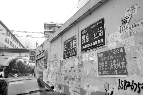 “人人参与、洁美随州”活动深受市民拥护,但城区一些背街小巷依然有数量较多的“牛皮癣”,影响市容环境。