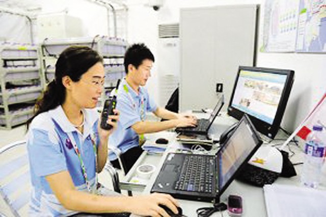 图为:中国移动(微博)通信专家正在大运会开幕式现场开展通信保障