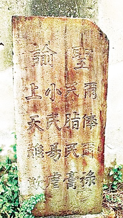 北宋初期,执政者为巩固其统治,十分推崇孟昶的 《令箴》。宋太宗赵光义时期,对《令箴》删繁就简,摘取其中“尔俸尔禄,民膏民脂。下民易虐,上天难欺”四句,颁于州县,敕令勘石立于衙署大堂前。以警戒其秉公办事,从政为民,故称《御制戒石铭》。两宋以后,《戒石铭》遍布全国各地,流传日广,成为名言警句,官场箴规。我市出土的此碑即为 《戒石铭》。