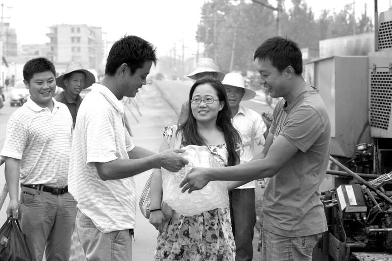 市政管理处日前将一批防暑降温品送到一线工人手中。据介绍,为配合洁美随州行动,该处担负着多处市政维修工作,工人们不畏艰辛工作在一线。(本报记者 孙洪涛 摄)