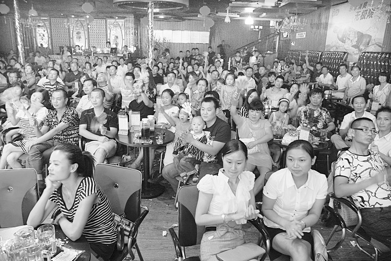 8月20日,来自草原的著名歌手格格放歌神洲大舞台(右图)。据悉,神洲大舞台是我市大型演艺中心,每天有数百名观众在此休闲,欣赏娱乐演艺明星奉上的“视听盛宴”(上图)。(本报记者 杨闻名 摄)