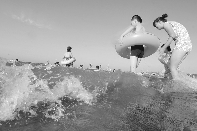 蓬莱19-3油田溢油事故发生至今,正值山东省旅游旺季,部分游客担心海水浴场的水质和水产品质量受到溢油影响,取消了到部分沿海市县旅游的行程。据山东省旅游部门初步统计,截至目前,该省部分沿海市县游客数量减少十多万人。图为游客在山东省蓬莱市海水浴场游玩。 新华社发