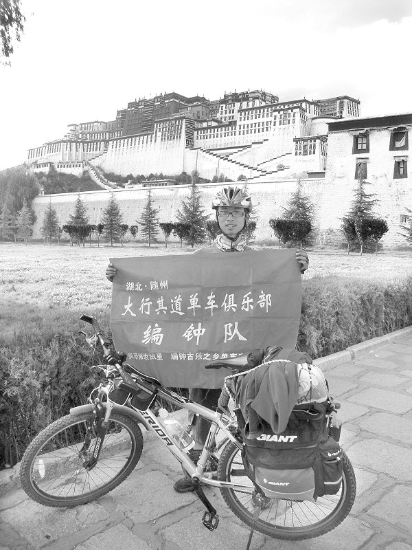 华科大计算机系随州籍学生夏阳西藏走单骑,骑行2200公里于8月20日返随。记者在随城文峰都市花园见到皮肤黝黑的夏阳。夏称,他7月8日从随州出发,途经成都、雅安、泸定、康定、雅江、理塘、芒康、左贡、拉萨等省市,到达终点布达拉宫。夏称,西藏是个神秘的地方,他单骑的意义是来宣传全民健身。(本报记者 杨闻名 通讯员 叶超 摄)