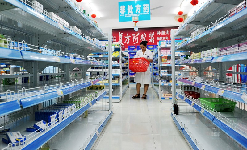 8月31日,合肥市一家药店的工作人员在将药品上架。 国家发展和改革委员会8月5日宣布,决定今年从9月1日起降低部分激素、调节内分泌类和神经系统类等药品的最高零售价格,共涉及82个品种、400多个剂型规格,平均降价幅度为14%。这是发展改革委今年第2次下调药品价格。 (新华社发)