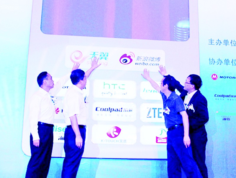 中国电信与新浪近日宣布,双方合作开发的基于微博的移动互联网产品正式推出。中国电信集团创新业务事业部总经理肖金学、新浪副总裁兼无线事业部总经理王高飞、天翼电信终端公司总经理马道杰、中国电信增值业务运营中心总经理叶利生、天翼博路公司副总经理齐力焕及多家知名终端厂商领导出席了新闻发布会。