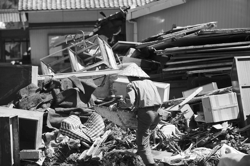 9月7日,在日本和歌山县那智胜浦町,居民清理淤泥和垃圾。今年第12号强台风“塔拉斯”在日本和歌山、奈良、三重等县造成了重大人员伤亡和财产损失,目前仍有数千人被困,交通与通讯的不畅通导致救援工作困难重重,进展缓慢。 (新华社发)