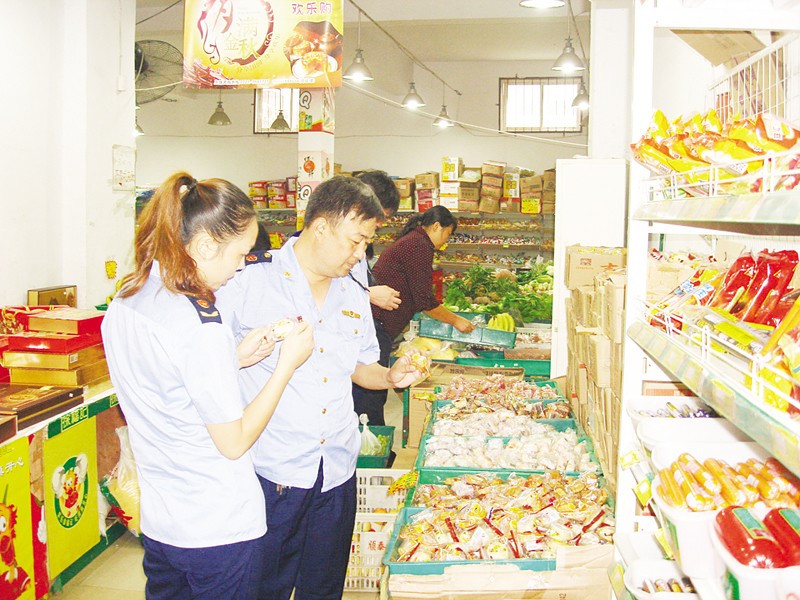 中秋和国庆双节即将来临,为确保节日期间食品安全,曾都开发区工商所开展了以月饼、水果、食用油、饮料、酒、散装食品、肉及肉制品等为重点的食品安全专项整治活动。(通讯员 张平 摄)