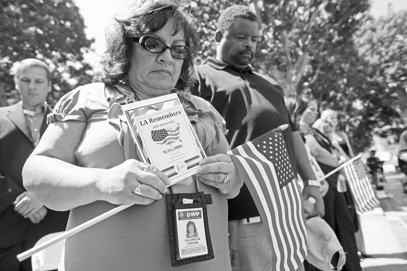 9月9日,在美国洛杉矶市政厅广场,市民和洛杉矶市政府官员参加当天举行的“9·11”十周年纪念活动。(新华社发)