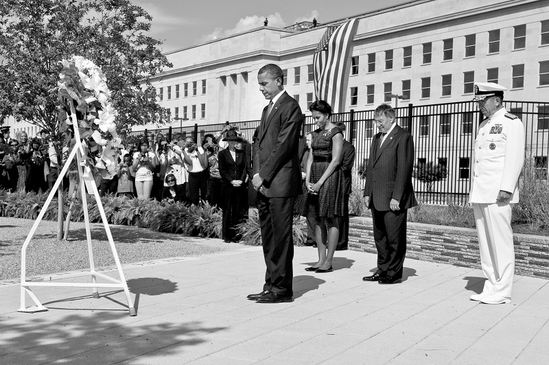 在华盛顿的五角大楼西南侧的“9·11”纪念园内,包括美国副总统拜登、国防部长帕内塔、美军参谋长联席会议主席马伦等在内的政府和军方官员、美军士兵以及遇难者家属代表出席了当天上午举行的纪念活动。当地时间上午9时37分,全体默哀。十年前的此时此刻,恐怖分子劫持一架美国航空公司77次航班撞上五角大楼,造成机上和建筑内共184人死亡。
