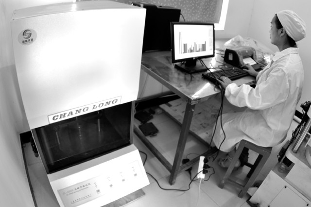 湖北利康药业包装有限公司不断创新产品,产业越做越大,内、外贸易双双增长。图为实验室工作人员在对产品实施质量检测。(本报记者 陈德友 摄)