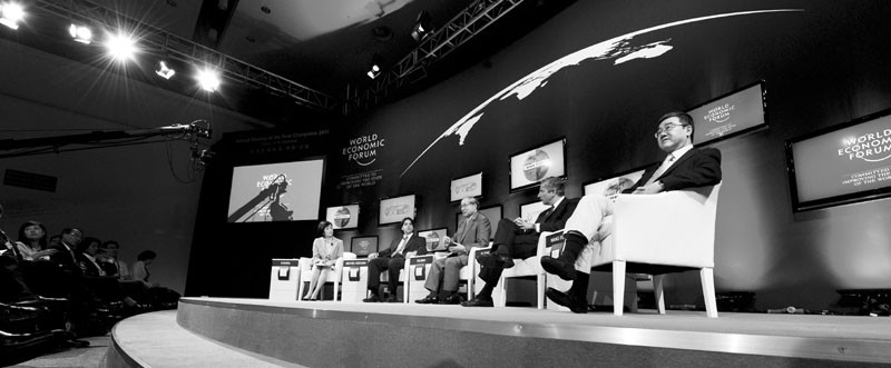 九月十四日,世界经济论坛2011新领军者年会(第五届夏季达沃斯论坛)举行以“应对极端混乱的局面”为主题的专题研讨会,就日本大地震后带来的教训和对全球供应链的影响,以及防范此类灾害造成的混乱局面进行研讨。(新华社发)