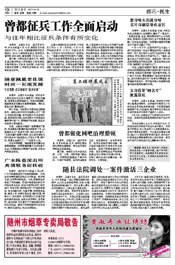 本报讯 记者包东流、通讯员裴作明、李运波报道:9月16日,曾都区正式启动征兵工作。当日,在随城解放路的征兵现场上,有65人现场报名登记,放发征兵宣传单3000余份,解答疑惑120余人次。