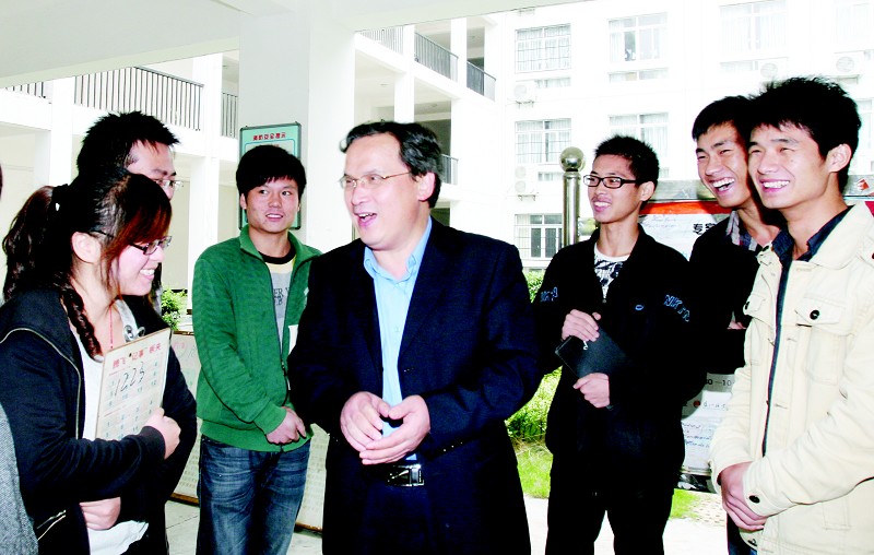 图为:中国地质大学教授徐世球在科普报告会之后,仍受到随州职院学生的“追捧”,学生们提出各种科学问题,徐教授一一解答。(本报记者 张顺 通讯员 肖新俊 摄)