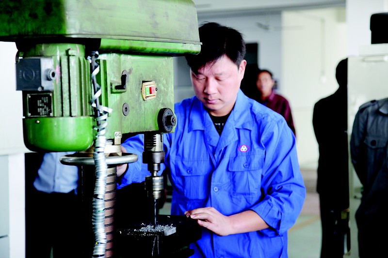 图为:“随州市万名职工职业技能竞赛”吸引各类能手参与,图为钳工项目选手正在展示技能。(通讯员 隋功惠 摄)