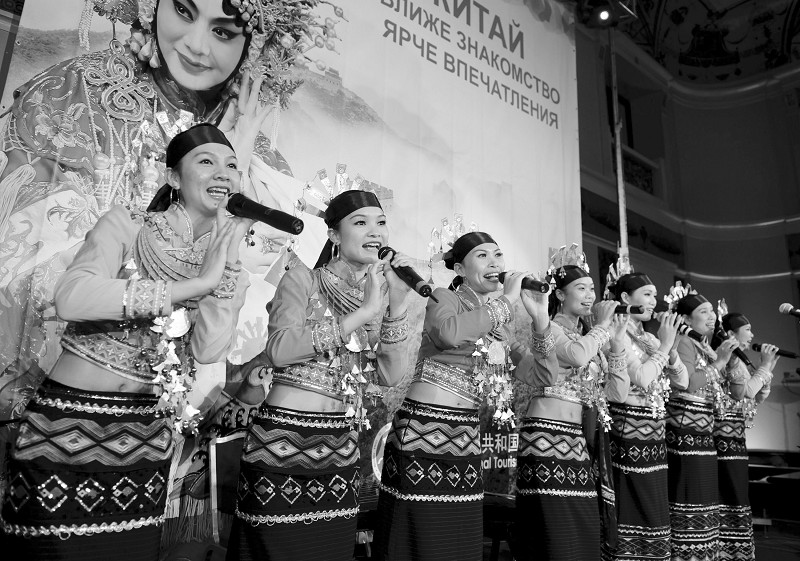 中国演员在莫斯科举行的中国旅游推介活动上演唱民歌(9月22日摄)。9月22日,中国旅游之夜大型旅游宣传推广活动在莫斯科举行,中俄两国旅游管理机构、旅游企业代表约200人与会洽谈合作。据统计,2011年以来,俄罗斯赴中国旅游人次同比增长13%,中国赴俄罗斯旅游人次同比增长15%,中俄两国旅游往来规模呈现快速增长态势。