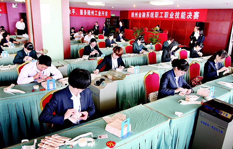 9月24日,“建行杯”随州金融系统职工职业技能决赛在城区格林豪威酒店隆重举行。来自建行、中行、农行等8家金融单位代表队30余名参赛选手,参加了点钞、计算机数据录入决赛。副市长夏卫东,市总工会党组书记、常务副主席刘爱书,市金融办,建行随州分行等单位负责人参加决赛开幕式。 (本报记者 杨闻名 通讯员 庞建刚 摄)