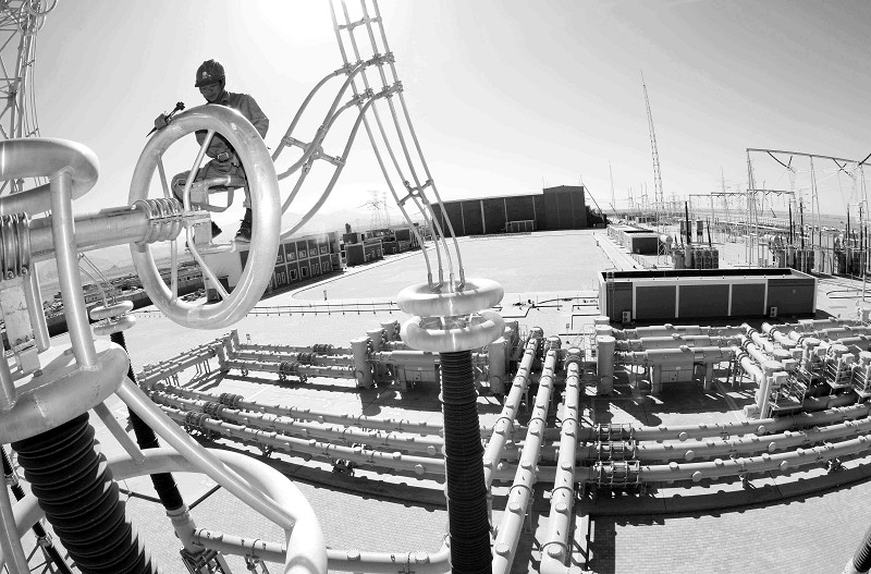 被誉为“电力天路”的青藏交直流联网工程格尔木至拉萨±400KV直流段塔基和线路已全部完成验收和消缺,拉萨换流站和柴达木换流站的建设也已进入收尾阶段。这意味着该工程有望于10月底全线投运。总投资162亿元的青藏联网工程是国家西部大开发23项重点工程之一,工程起于青海西宁,终至西藏拉萨,线路总长约3000公里,是世界上高海拔地区建设规模最大、穿越冻土最长的输变电工程。图为9月24日,一名工人在青海省格尔木市柴达木换流变电站检查750千伏电气设备,做投产前的最后准备。 (新华社发)