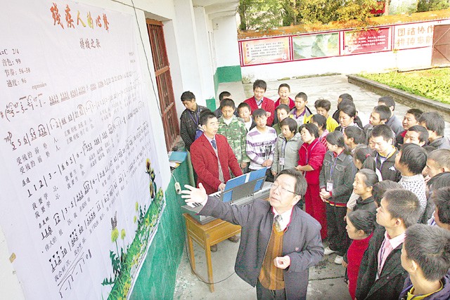 9月23日,一群残疾青少年在随县博爱(残疾人)就业培训中心园区放声歌唱该校自创歌曲《残疾人的心声》。据介绍,该中心一年来,在山区乡镇招收130多名农村残疾青少年,以不收取任何费用的方式进行培训,教他们做人,教他们学一技之长,教他们自立谋生,赢得社会高度赞誉。一些企业家及爱心人士纷纷伸出援助之手,将浓浓的爱心汇聚于这里。 (本报记者 杨闻名 摄)