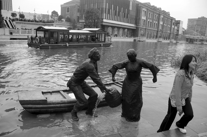 刚竣工的武汉楚河汉街在国庆节开放,迎来众多游客。作为大东湖生态水网工程的启动工程,武汉市通过一条人工河将市内东湖和沙湖两大城中湖连通起来,以形成集防污控污、生态修复、水上旅游等多种功能为一体的生态水网系统,并在人工河道的两岸分别建设生态景观长廊和亲水商业步行街,称为楚河、汉街。 新华社发