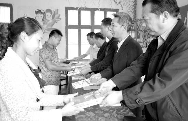随县环潭镇大碑小学长期坚持开展校园读书比赛和“晨诵、午读、暮省”活动,营造出浓郁的读书氛围,深受社会各界和家长的好评。近日该镇中心学校负责人带来该镇各部门捐赠的书籍,鼓励师生继续开展好读书活动。(本报记者 李文军 摄)