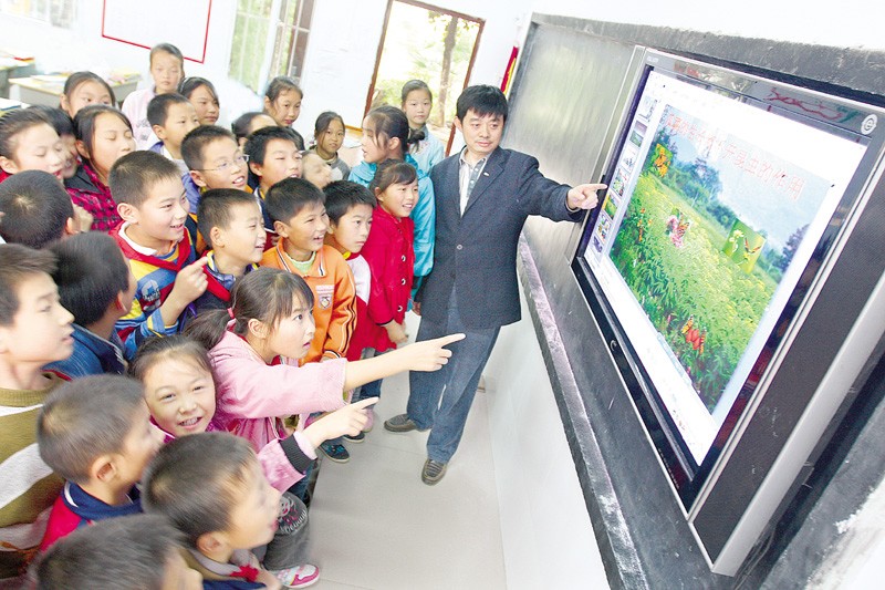 近月来,曾都区洛阳镇高小在全区率先实现教育信息 “班班通”。该校多渠道筹集资金,建成了教师电子备课室,实现宽带有线接入,终端教室实现无线接入,为偏远山区孩子提供了优质的教育资源。(本报记者 杨闻名 通讯员 胡兵 摄)