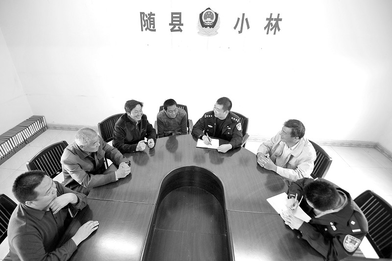 随县小林镇派出所每月坚持开展开门评警活动,请各村、居委会综治负责人和群众代表对民警工作作风进行监督和评议,帮助派出所改进工作,该镇治安面貌焕然一新,两年来辖区内未发生一起治安事件。 (本报记者 李文军 摄)