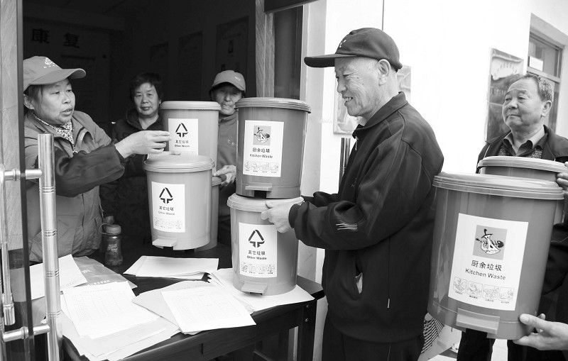 10月19日,北京市怀柔区工作人员向富乐北里社区居民发放“家用垃圾分类桶”。当日,北京市怀柔区在14个社区向居民发放“家用垃圾分类桶”1万个,引导社区居民积极参与垃圾分类,实现“垃圾分类”从每个家庭做起,把社区建成绿色环保的美好家园。 (新华社发)