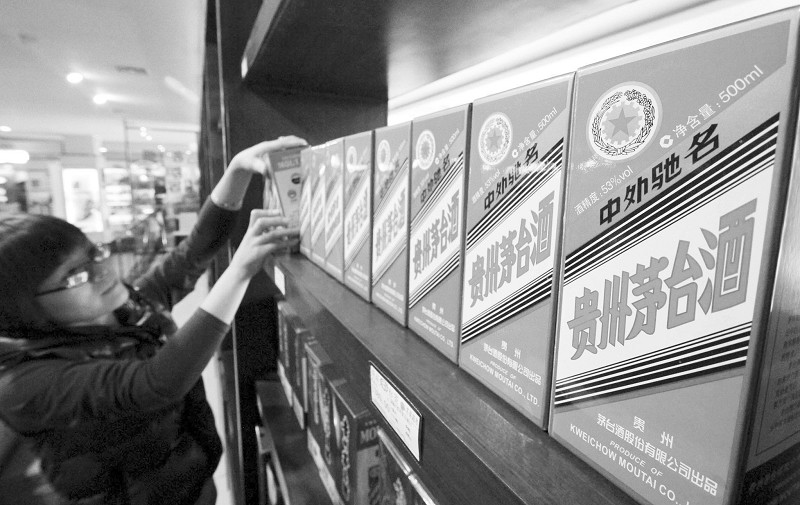 10月18日,在山东省临沂市郯城县一家超市,工作人员在摆放茅台酒。今年1至9月,贵州茅台酒股份有限公司实现净利润65.69亿元,同比增长近六成。公司前三季度营业总收入136.42亿元,同比增长46.26%;实现利润总额92.8亿元,增长57.39%;基本每股收益6.33元。 (新华社发)