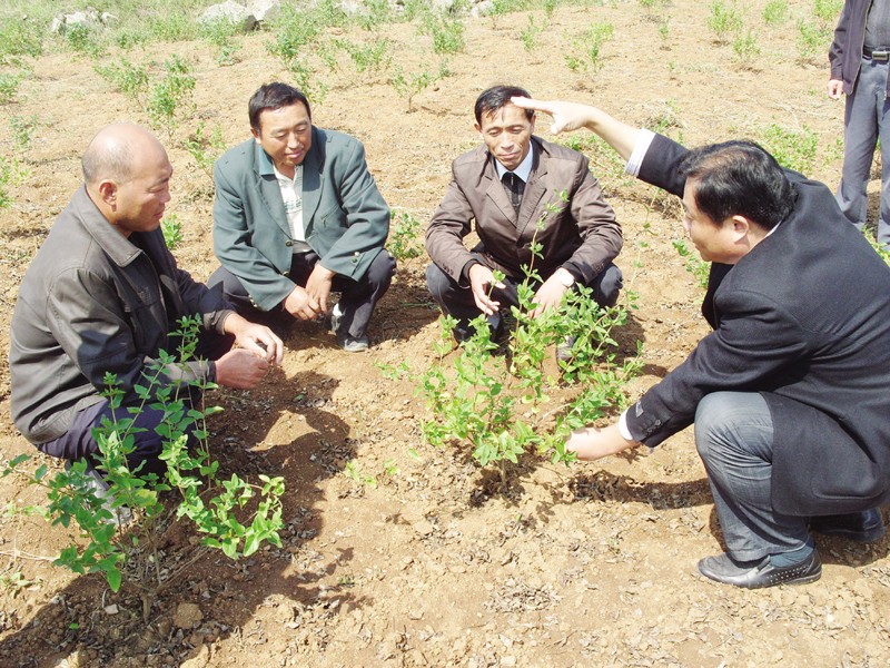 日前,曾都区科协主席刘毓一行来到万店镇九组,现场指导村民王世保、王学富金银花支架技术,为全村五百余亩种植面积带个好头。(刘长华 摄)