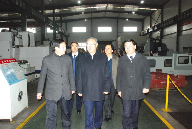 中国工业机械联合会会长王瑞祥(中)到齐星公司调研,市委书记王祥喜(右)陪同。