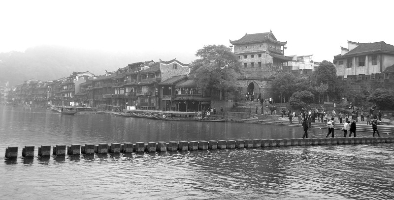 近日,湖南湘西凤凰古城对景区内的120户典型特色民居进行挂牌保护,由政府筹资分期分批进行保护维修。同时,严把规划“关口”,控制新的不协调建筑出现。图为凤凰古城北城门楼附近的沱江风光。(新华社 发)