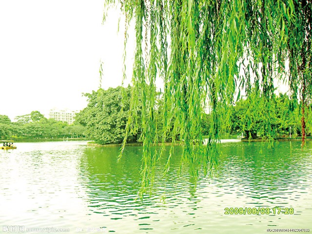 想起欧阳修的千古名句:“月上柳梢头,人约黄昏后。”一个“柳”字,让普普通通的黄昏有了意境,有了羞羞怯怯的情怀。想起这句诗词,就忍不住地想,为什么是“柳”,而不是桃、杨或者其他的什么树呢?相比,作者所中意的,就是唯柳所有的轻盈和柔美吧!