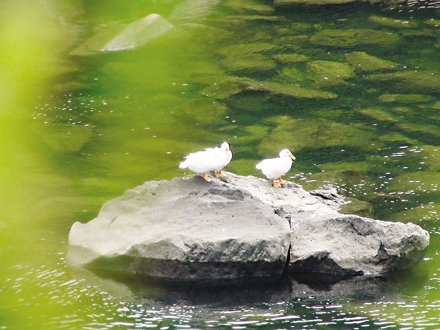 早上8点,我们准时赶到游船码头。运气不错,赶上第一班游船。游船像一只矫健的海燕匀速向湖心驶去。镜泊湖的水,是那样的平静、那样的清纯。湖面上微风徐徐,但却水波不兴,船儿像在一面巨大的玻璃镜上滑行,特别平稳、舒逸。湖水清澈见底,湛蓝迷人。蓝似海洋,可又比海洋蓝得纯净;蓝似天空,可又比天空蓝得深沉,简直就像尚未凝固的玻璃浆液一样,给人以醉心的感觉。真是湖如其名。