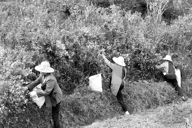 “菊花黄,菊花香。菊花茶,香醇长。菊花枕头好清凉……”野菊花有清热解毒和明目、降血压的功效,我市民间素有用野菊花泡茶、入药和做枕头的传统。目前正值野菊花盛开的季节,乡村田野随处可见采摘野菊花的农民身影。图为10月30日,3个婆婆正在曾都区南郊办事处椅子山村田埂上采摘野菊花。 (本报记者 李文军 摄)