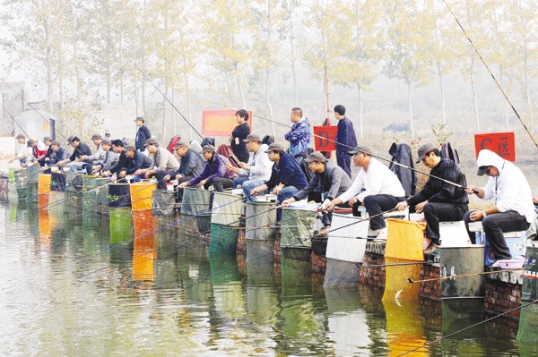 11月3日,随州钓王俱乐部在曾都区碧水源山庄举行了2011随州“美人鱼”杯钓鱼邀请赛,武汉、襄阳、孝感、荆门、南阳、随州6地约50名钓鱼高手应邀参赛。 (本报记者 李文军摄)