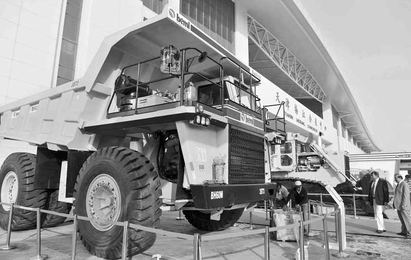 这是11月6日拍摄的印度贝姆勒股份有限公司展出的一台翻斗机。当日,由中国国土资源部、天津市人民政府共同主办的2011(第十三届)中国国际矿业大会在天津开幕。本届矿业大会为期3天,主题是“加强国际合作、加快找矿突破”。本届中国国际矿业大会由高峰论坛、行业展览、同期活动组成,以投资、合作、交易为主要内容。 (新华社发)