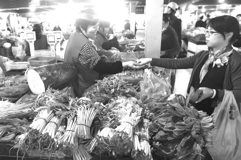 图为:市民在上海一家标准化菜场内购买蔬菜。