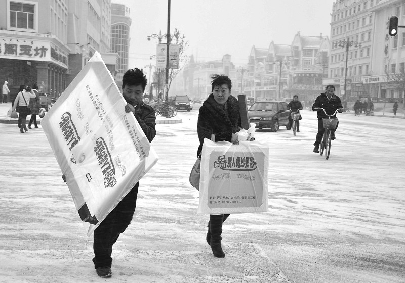 内蒙古呼伦贝尔牙克石市街头,路人顶风冒雪前行。内蒙古东北部呼伦贝尔大兴安岭地区连日来持续降温、降雪,呼伦贝尔地区目前有145条客运班线停运,停发379个班次。呼伦贝尔地区气温已普遍下降了8-10摄氏度,其中北部根河地区的最低气温11月13日突破零下30摄氏度。(新华社发)