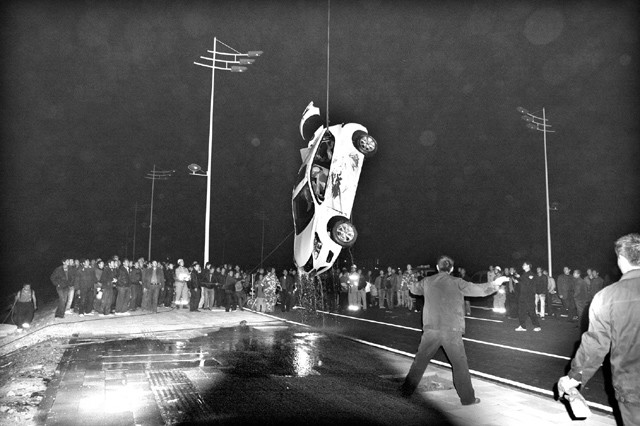 十一月十七日下午三点五十五分,一辆白色小轿车冲入位于城区白云大道(城南新区白桃路口)附近一路边水塘里,市消防支队、市交警支队四大队工作人员迅速赶赴现场,两个多小时后终将车打捞上岸。车内一男一女不幸身亡,事故原因正在调查之中。(本报记者 牧野 通讯员 李小念 摄)