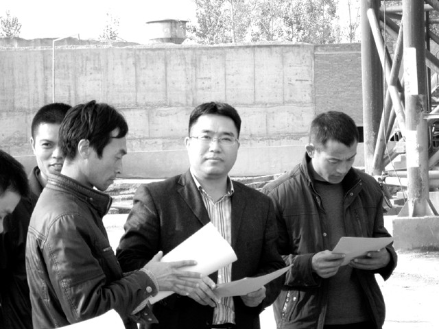 图为:随县法律援助中心主任聂建斌(中)在建筑工地向农民工进行法制宣传。